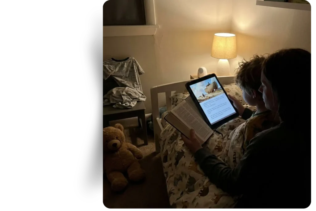“What I appreciate most is how simple it is to use. I don’t need to prepare anything. We print a page, read it together, and it opens thoughtful conversations about Scripture in a way that fits naturally into our routine.”— Emma R., Australia